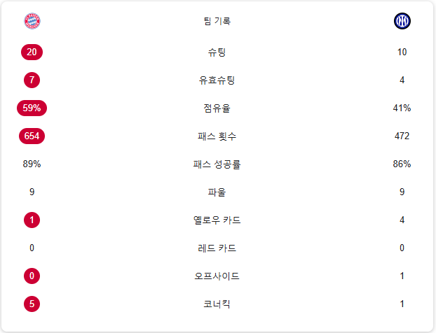 | 항목 | 바이에른 뮌헨 | 인터밀란 |