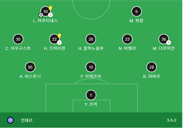 - 라우타로 마르티네즈: 선제골 기록. 인터밀란 공격의 중심.